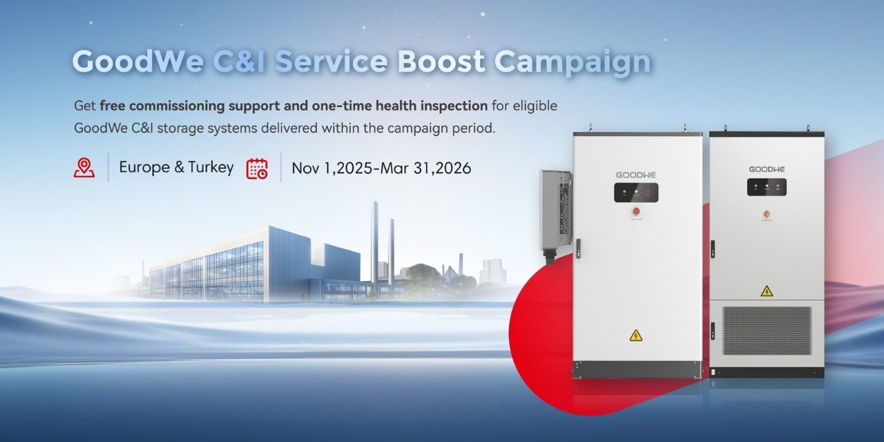 A GoodWe 2025. november 1. és 2026. március 31. között futó C&I Service Boost kampánya különleges támogatást nyújt olyan nagyvállalati energiatárolós projektekhez, amelyekben BAT 60/112 kWh akkumulátorrendszerek vagy ESA 125 kW / 261 kWh all-in-one megoldások szerepelnek.